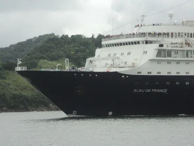 Apesar da previsão inicial de chegada às 06 horas, chegou hoje a Santos, às 09h30min o Bleu de France. No momento, ele se encontra atracado no Armazém 23, ao lado do Terminal de Passageiros, encerrando o embarque de 701 passageiros. Infelizmente, o tempo em Santos já estava cinzento, mas no momento da chegada do navio, não chovia, e poucas pessoas acompanharam a entrada do navio.