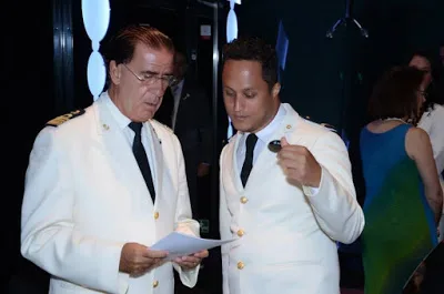 Fabrício e o comandante Giuliano Bossi, a bordo do MSC Preziosa |