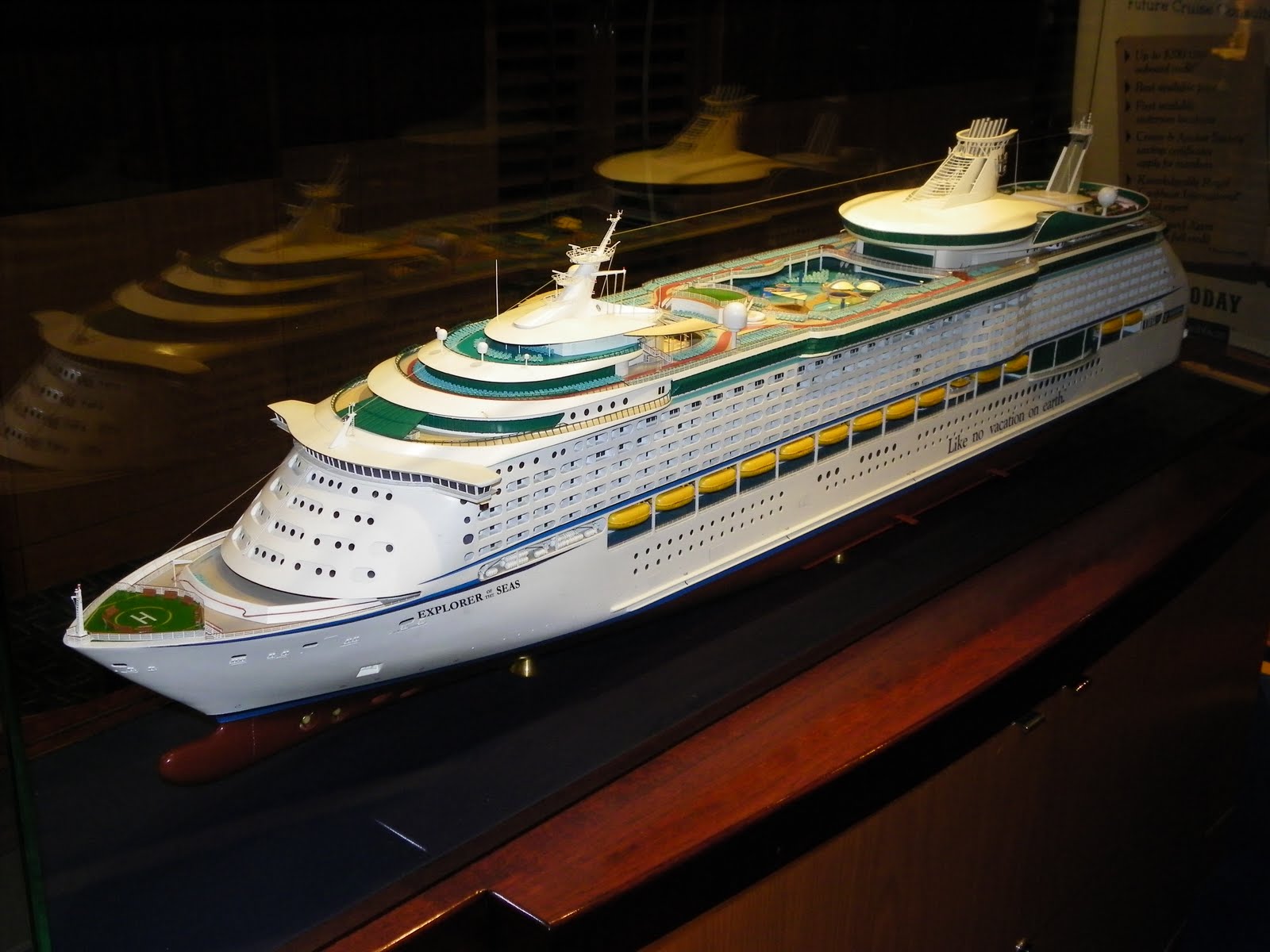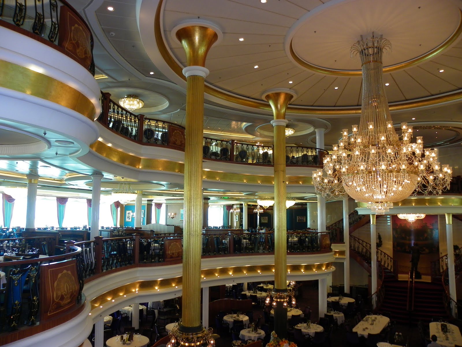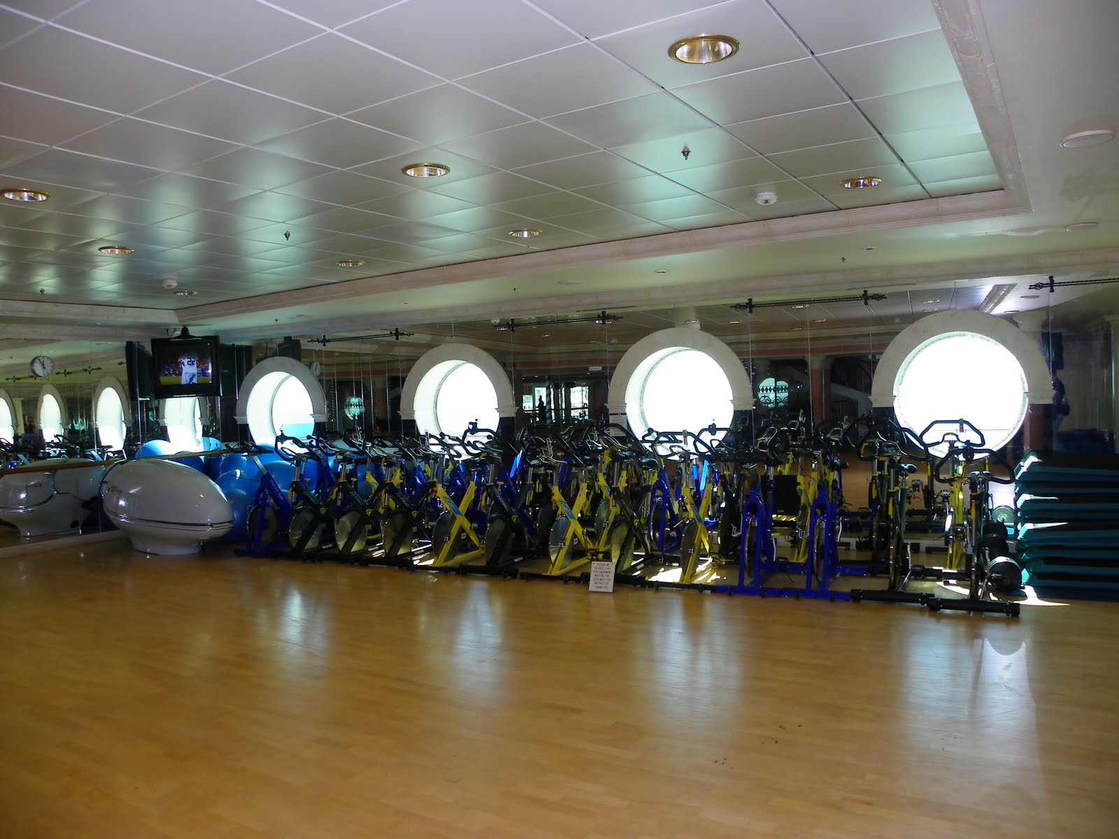 Acima, o Fitness Center, ao lado e abaixo, a Royal Promenade. Mais abaixo, miniatura do navio, Casino Royale, e Restaurante Vivaldi. Mais abaixo, Fliperama, Pool Bar, ambiente do Viking Crown Lounge. E outros Ambientes.