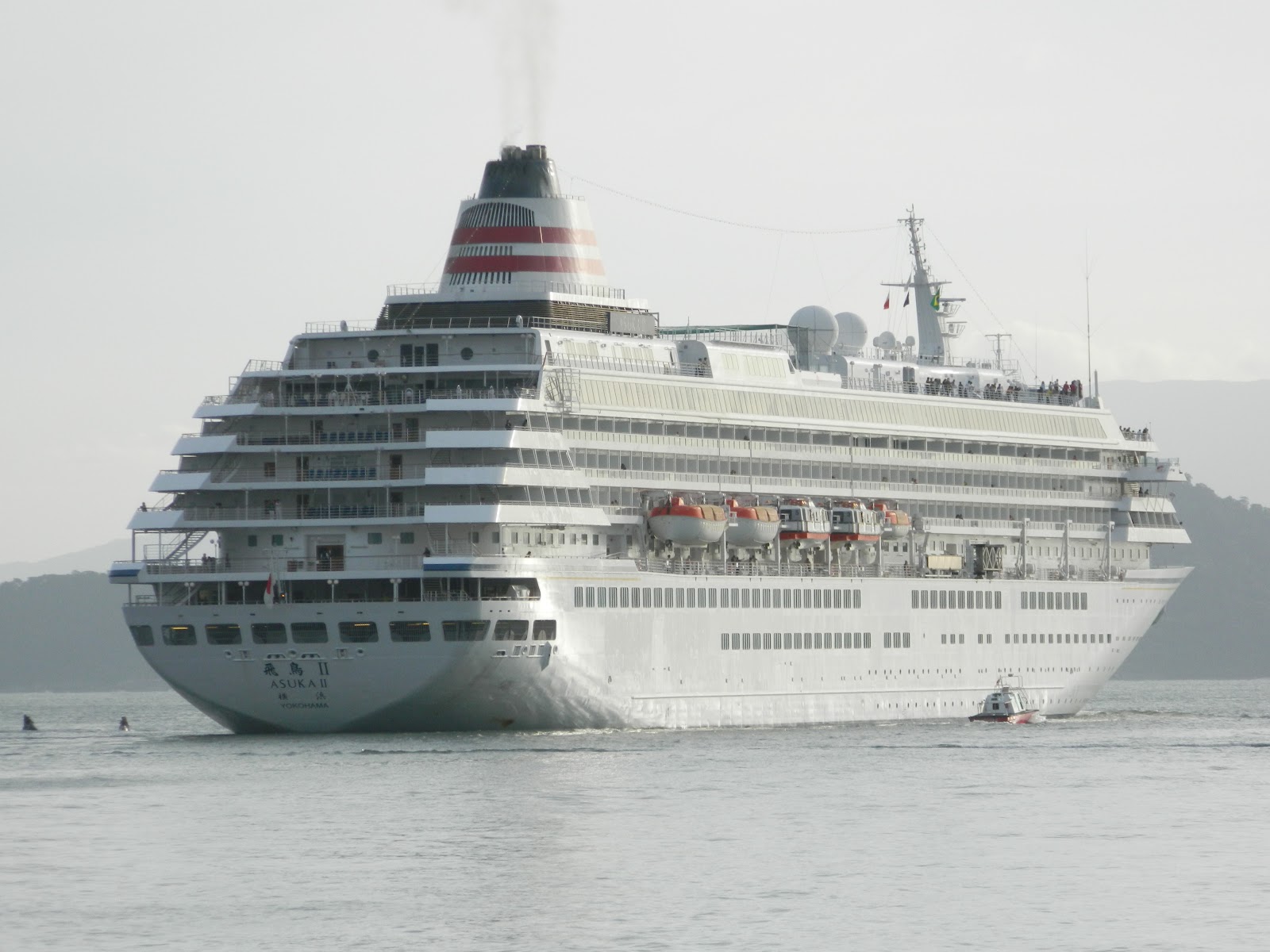 O navio japonês Asuka II, da armadora também nipônica Asuka Cruises deixou o porto de Santos na tarde do último Sábado, após passar uma noite na cidade, atracado no Armazém 25, em frente ao Concais. Sua chegada, aconteceu na manhã da sexta-feira (clique aqui para ver matéria do dia), durante um cruzeiro de volta ao mundo, iniciado em Yokohama, no Japão. Este porto, aliás, é também seu porto de registro, ou seja, além de operar para uma armadora japonesa, o Asuka II também ostenta o pavilhão desse país.