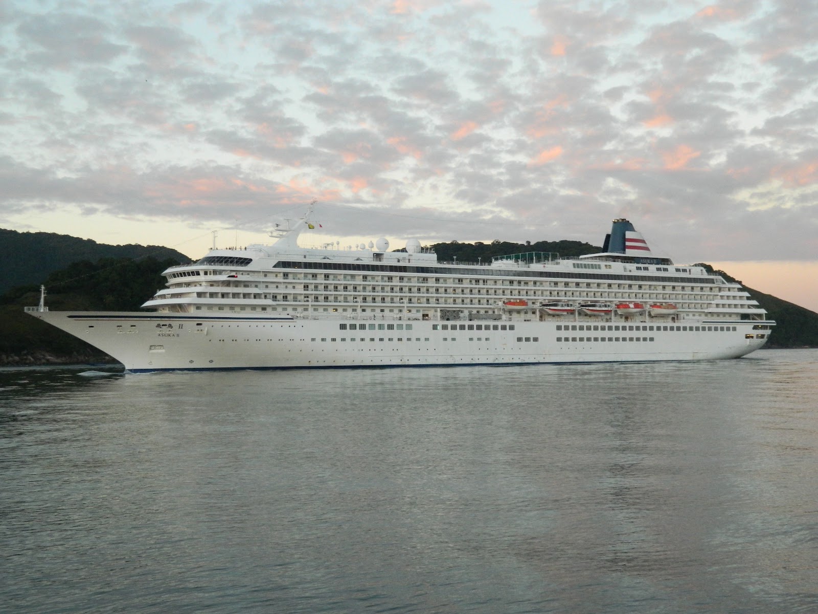 Chegou a Santos hoje, dia 18 de Maio de 2012, o último navio a estrear em Santos na temporada 2011/2012, o Asuka II. Com a temporada regular encerrada ainda em Abril, o navio vêm a Santos com seus passageiros em trânsito, para encerrar definitivamente a estação, que começou em Outubro do ano passado. Em escala inaugural na cidade, o Asuka II, protagonizou também a estréia de sua companhia, a Asuka Cruises, marca irmã da Crystal Cruises. Sendo que ambas são parte da gigante NYK Line – Nippon Yusein Kaisha (em português algo como Companhia de Navegação Postal Japonesa).