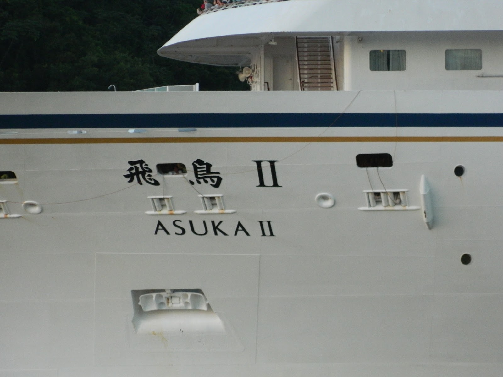 O Asuka II, está no Brasil, devido a uma viagem de volta ao mundo, iniciada na cidade que também é seu porto de registro: Yokohama, no Japão. Com mais de100 noites de duração, o cruzeiro ainda inclui no Brasil, escalas no Rio de Janeiro, em Salvador, e em Belém. Em Santos, o navio chegou pouco depois das 6h30min, e continua atracado no cais do Armazém 25, em frente ao Concais, onde pernoitará antes de partir durante a tarde de Sábado, com previsão em um horário no mínimo não usual: 14 horas.