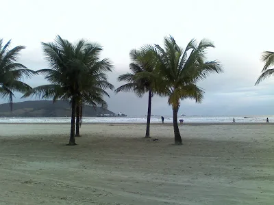 Vista da praia de Santos agora há pouco, nenhum navio de passageiro, muitos de carga, aliás, o último recorde de navios na barra foi de 124, há mais ou menos umas duas semanas. Clima frio, ventando muito, em nada lembra o verão, ou a temporada. Faltam 55 dias para a temporada!