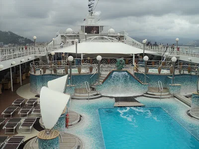 | Piscina do MSC Orchestra, um dos maiores a operar no Brasil (veja mais fotos do interior do Orchestra clicando aqui). |