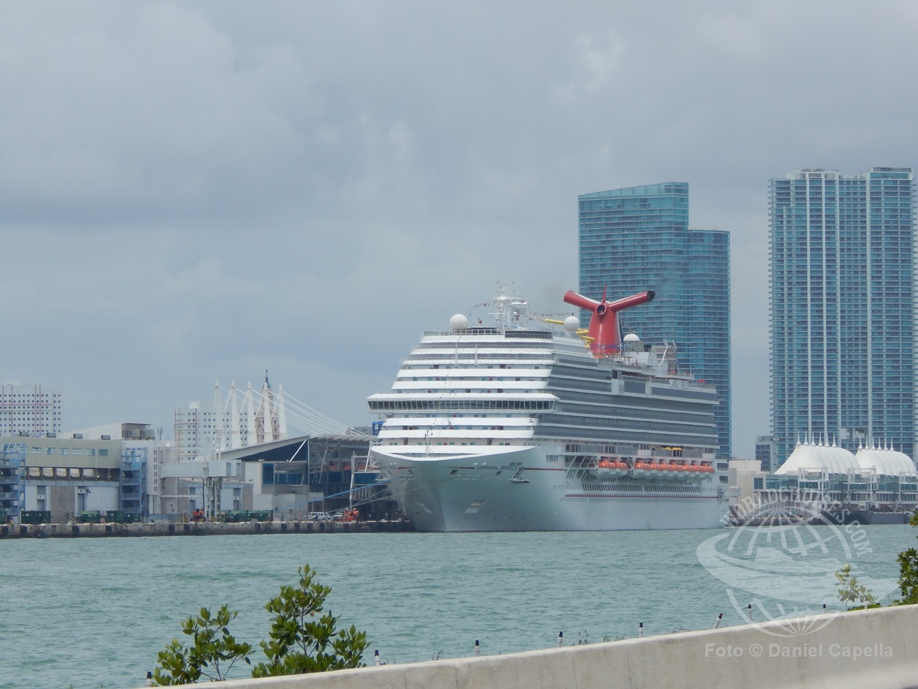 O Carnival Breeze esteve hoje no porto de Miami, na Flórida, EUA. Iniciando um roteiro de 6 noites pelo Caribe, o navio é o mais novo da frota da Carnival Cruise Lines.