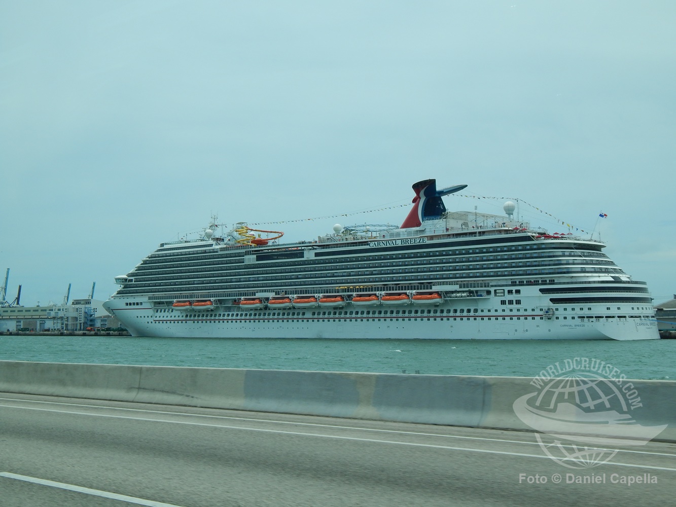 Maior e mais novo navio da Carnival Cruise Lines, o Carnival Breeze esteve hoje no porto de Miami, EUA. Baseado na capital da Flórida, o navio é o mais recente da classe Dream, iniciada com o próprio Carnival Dream em 2010.