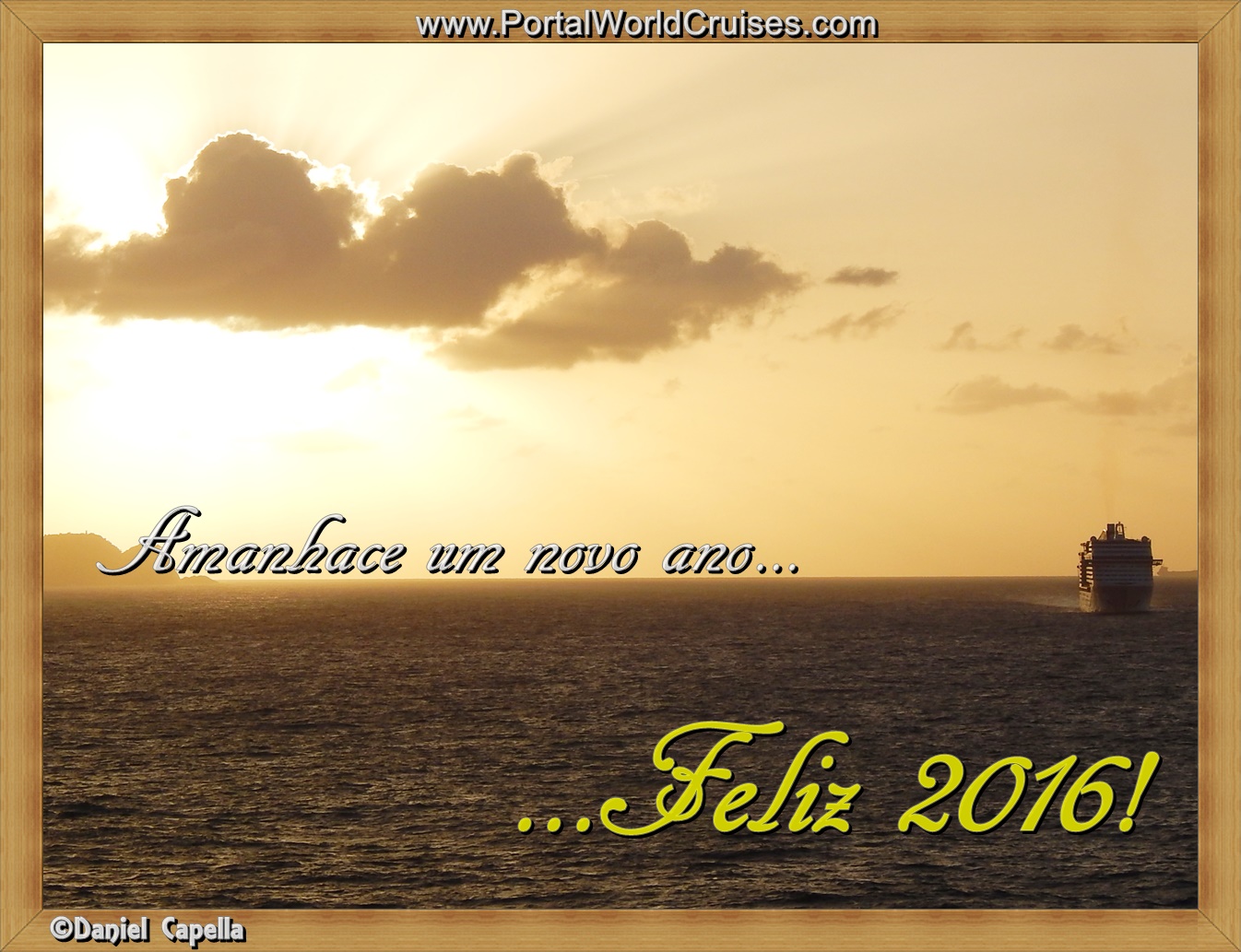 Com essa imagem do MSC Preziosa ao amanhecer entrando no Porto de Santos, desejamos a nossos leitores, parceiros e amigos um feliz Ano Novo. Que 2016 traga, não só, alegria, paz, felicidade e saúde, mas também o que faltou em 2015. E também, claro, muitos cruzeiros para todos nós!
