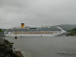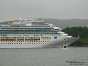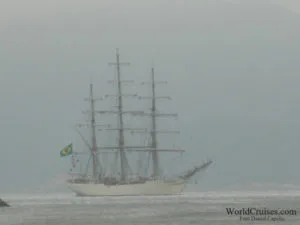 Temático Emoções em Alto Mar parte de Santos sob chuva.