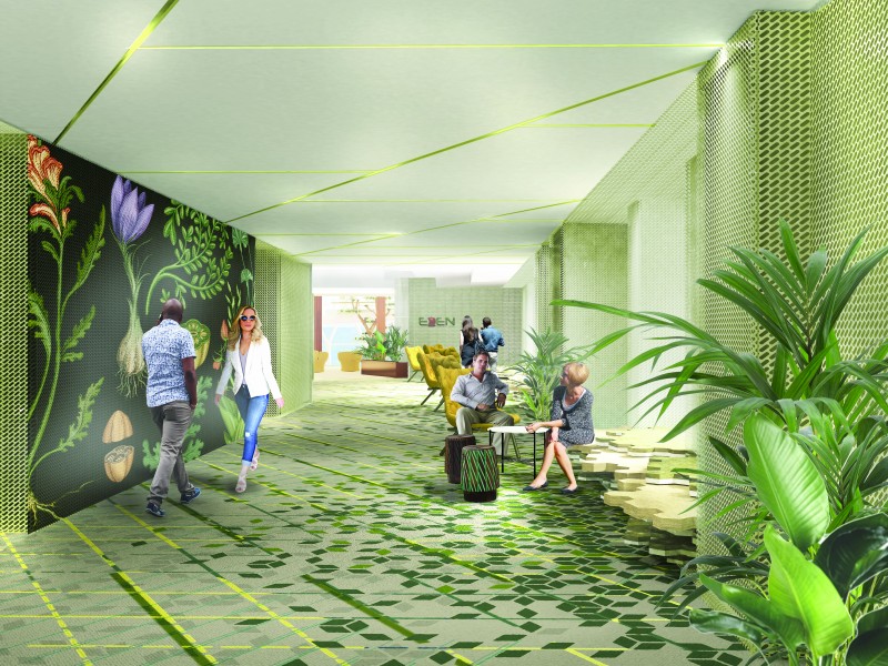 O Eden, uma área multi-uso na popa do novo Celebrity Edge, é mais uma das inovações que o navio trará quando entrará em operação em 2018. Com mais de 2000m² de paredes de vidro para o exterior, o espaço foi inspirado na natureza, e terá plantas reais, mesclando entretenimento com culinária e descanso.