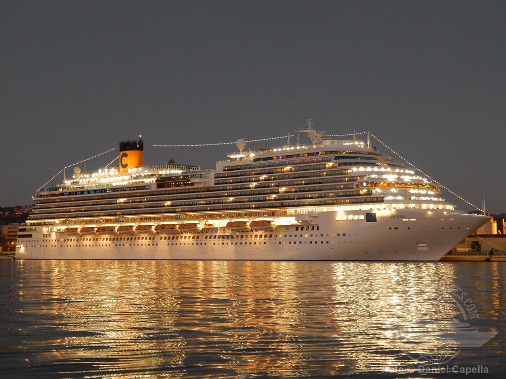 Em suas visitas semanais, o Costa Diadema, flagship da frota da italiana Costa Crociere, costuma passar cerca de 12 horas na cidade. Chegando cedo, por volta das 08h30 e partindo apenas durante a noite, às 20h30, o navio embarca passageiros na cidade em pequena quantidade, e tem a maior parte de seus hóspedes em trânsito. O Diadema embarca passageiros também em todos os outros portos de escala de seus cruzeiros – Savona (porto-base), Barcelona, Marselha, Palma e Napoli (porto substituído por Civitavecchia a partir de dezembro).