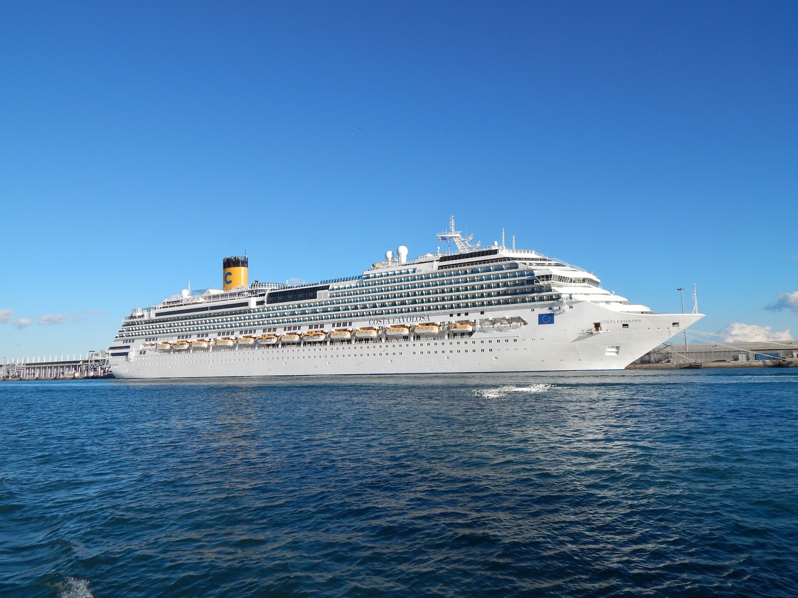 | Costa Favolosa em Barcelona, um dos pontos de partida dos cruzeiros Costa pelo Mediterrâneo |