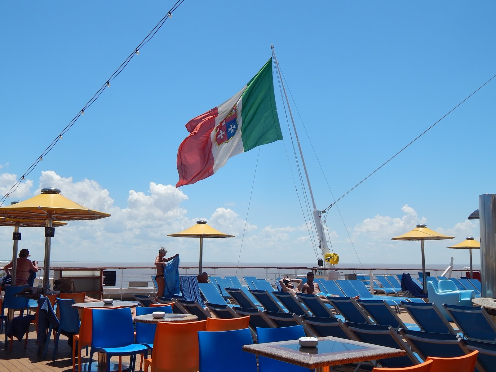 | Bandeira italiana no Fascinosa: a Costa é a única grande companhia de cruzeiros a registrar seus navios na Itália |