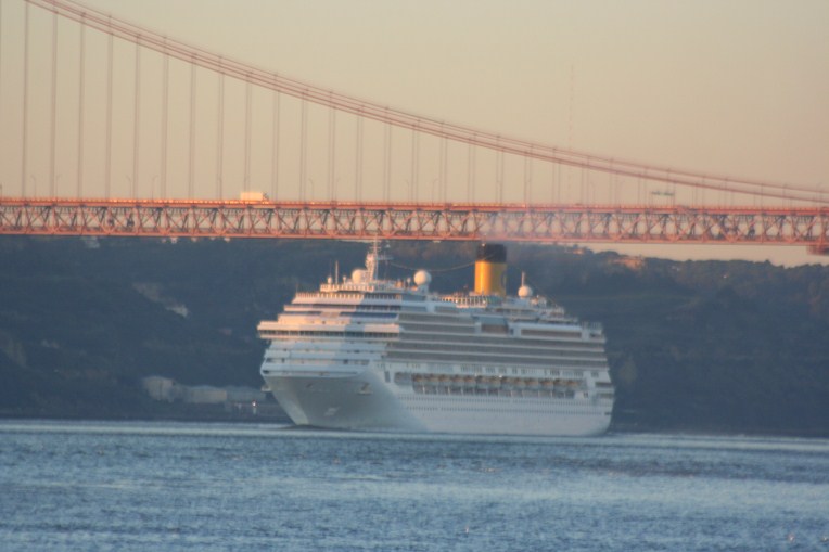 | Já atracado na capital portuguesa, onde também houve embarque de passageiros, |