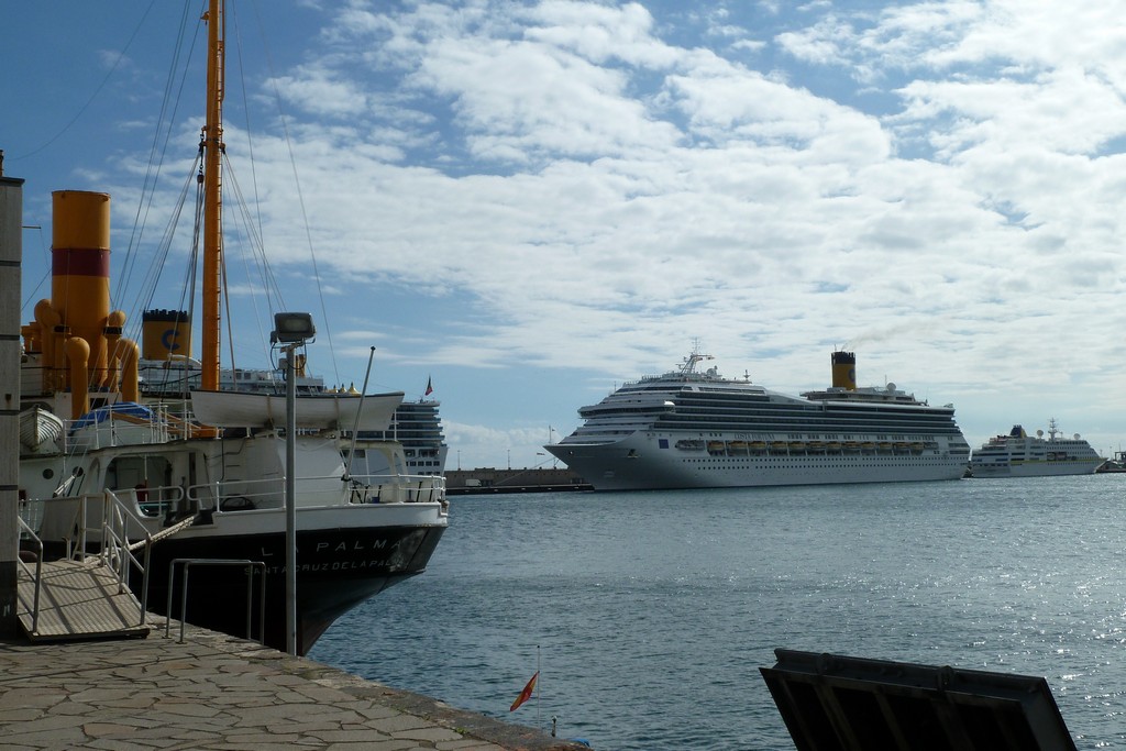 | Em Tenerife, três companheiros de frota, o Fortuna, o Luminosa e o Favolosa (da direita para a esquerda) |