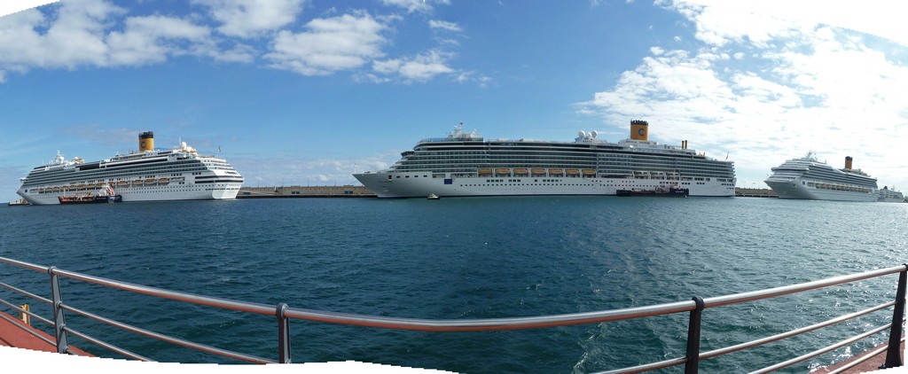 | Lá encontrou o seu quase gêmeo Costa Pacifica, que nessa temporada continuará na Europa. |