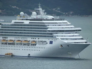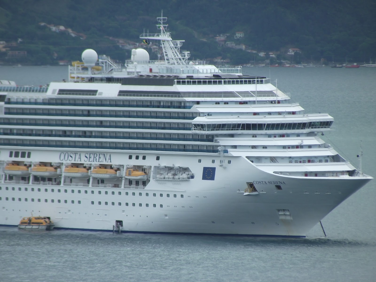 Fotos recentes do Costa Serena, navio da Costa Crociere destinado ao mercado argentino nesta temporada, em Ilhabela, no litoral de São Paulo. O Serena realiza roteiros de 8 e 9 noites entre seu port-base argentino e cidades brasileiras até meados de Março.