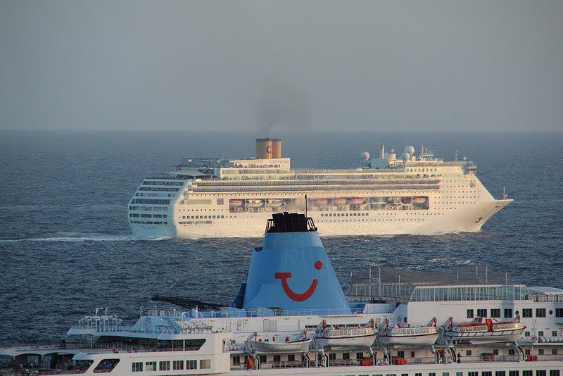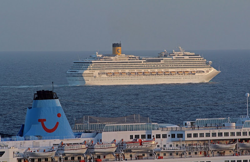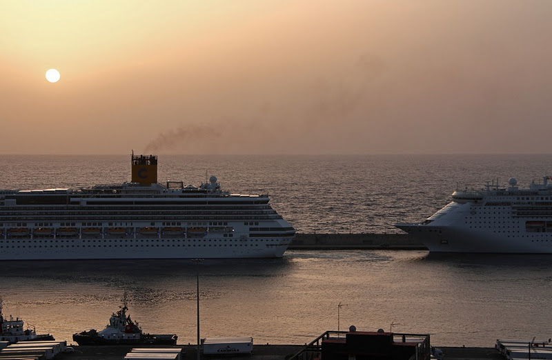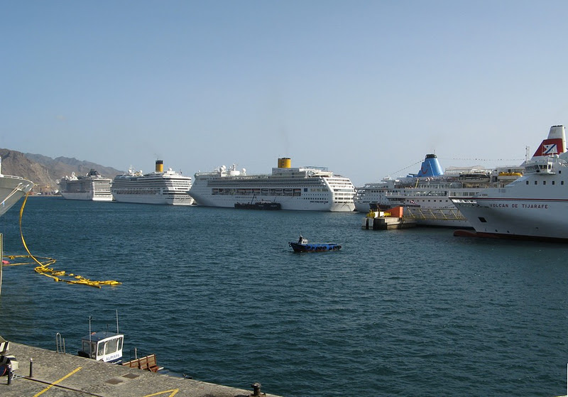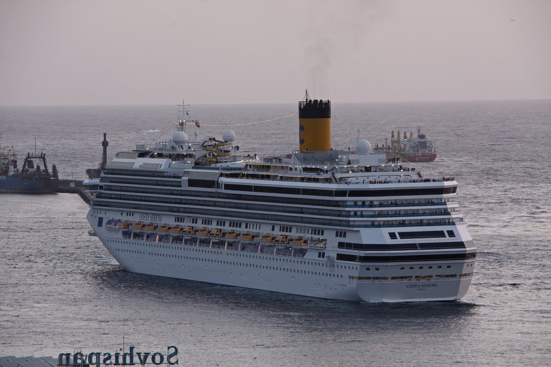 Fotos do Costa Victoria em Santa Cruz de Tenerife enquanto se encaminhava ao Brasil no último dia 2. No dia 9 ele chegou no Brasil, em Recife, mais especificamente, e amanhã estará em Santos para iniciar sua temporada. No mesmo dia em Tenerife estiveram outros 7 navios, entre eles o Costa Serena, o Thomson Dream, ex-Costa Europa e o MSC Fantasia.