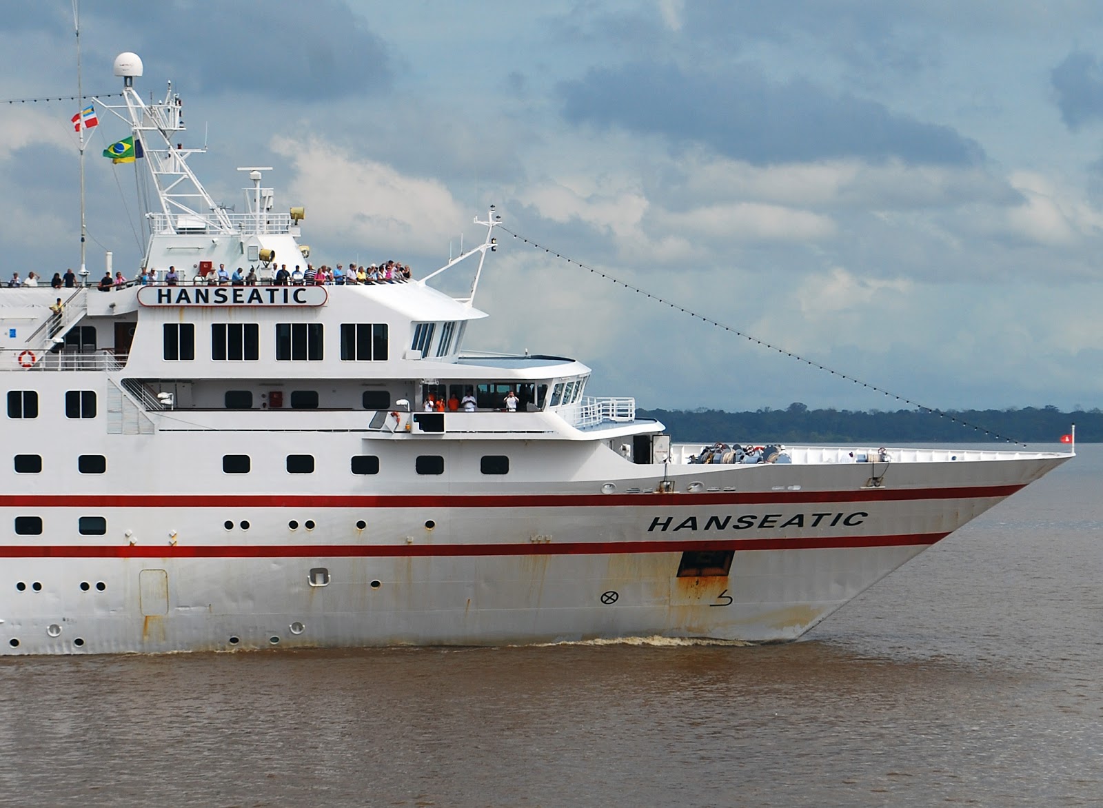 Mais uma vez, Belém recebe a visita do Hanseatic, um velho conhecido, que por seu tamanho e calado pequenos, navega sem dificuldades pelos rios da região. Nesta viagem, ele seguirá pelo Rio Amazonas, escalando em Breves, Alter do Chão, Parintins, Manaus, Ilha da Botija, Rio Jutai, Letícia (Colômbia), Pevas e finalmente Iquitos (Peru), de onde partirá novamente dia 20 de abril, fazendo o trajeto oposto até Belém, para então iniciar uma travessia do Atlântico rumo as Ilhas Canárias. A Entrada na Baia do Guajará aconteceu por volta das 09h, através do canal Minas Gerais, ao lado oposto da cidade, seguindo depois até a área de manobra e atravessando a baia rumo ao porto, onde atracou por volta das 10h local. Felizmente o tempo colaborou e a chuva que tem castigado a região foi substituida pelo inclemente sol do equador, permitindo a tomada de boas fotos.