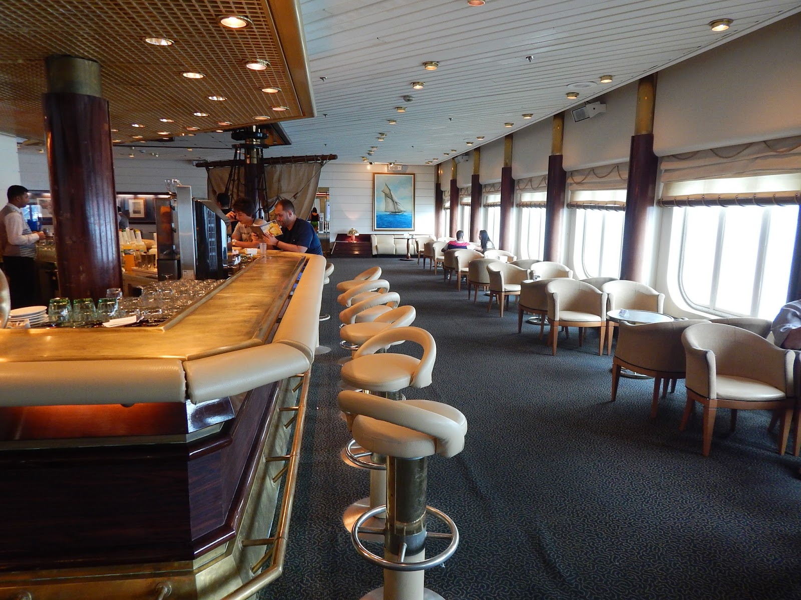 | Bares funcionarão no sistema all-inclusive. Este é o Spinnaker Piano Bar. Para ver mais dos interiores do Sovereign, clique aqui. |