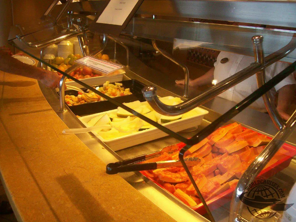 9- De preferência a alimentos mais leves como frutas, legumes, peixes e aves. Mas certifique-se, se possível, que estejam frescos e bem conservados. No caso de carnes, é importante que esteja sempre bem passada ou bem cozida. Alimentos como iogurtes e queijos também devem estar frescos e bem conservados. Da mesma forma, legumes devem estar devidamente cozidos. Evite abusar de maionese especialmente nos dias de maior calor. Este é um alimento delicado e requer cuidado no preparo, manipulação e conservação.É claro que estes são apenas alguns poucos exemplos diante da enorme variedade de alimentos à disposição dos passageiros nos cruzeiros marítimos e nem sempre é fácil ou possivel verificar as condições de tais alimentos. Essas regras são importantes especialmente no caso do buffet e é importante verificar se os alimentos são repostos ou trocados constantemente. Desta forma o passageiro tem mais chance de encontrar alimentos mais frescos.