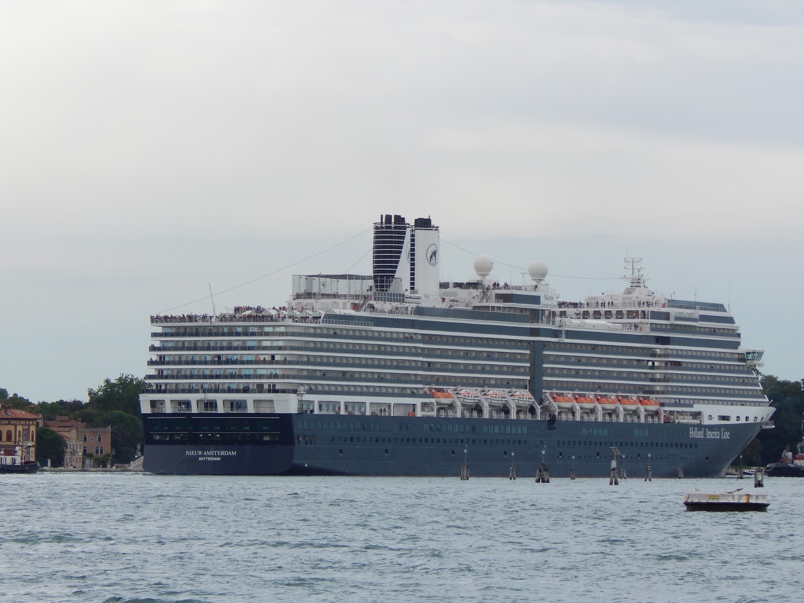 | Navio da Holland America Line navega pelo Canal da Giu- decca, em Veneza, Itália. |