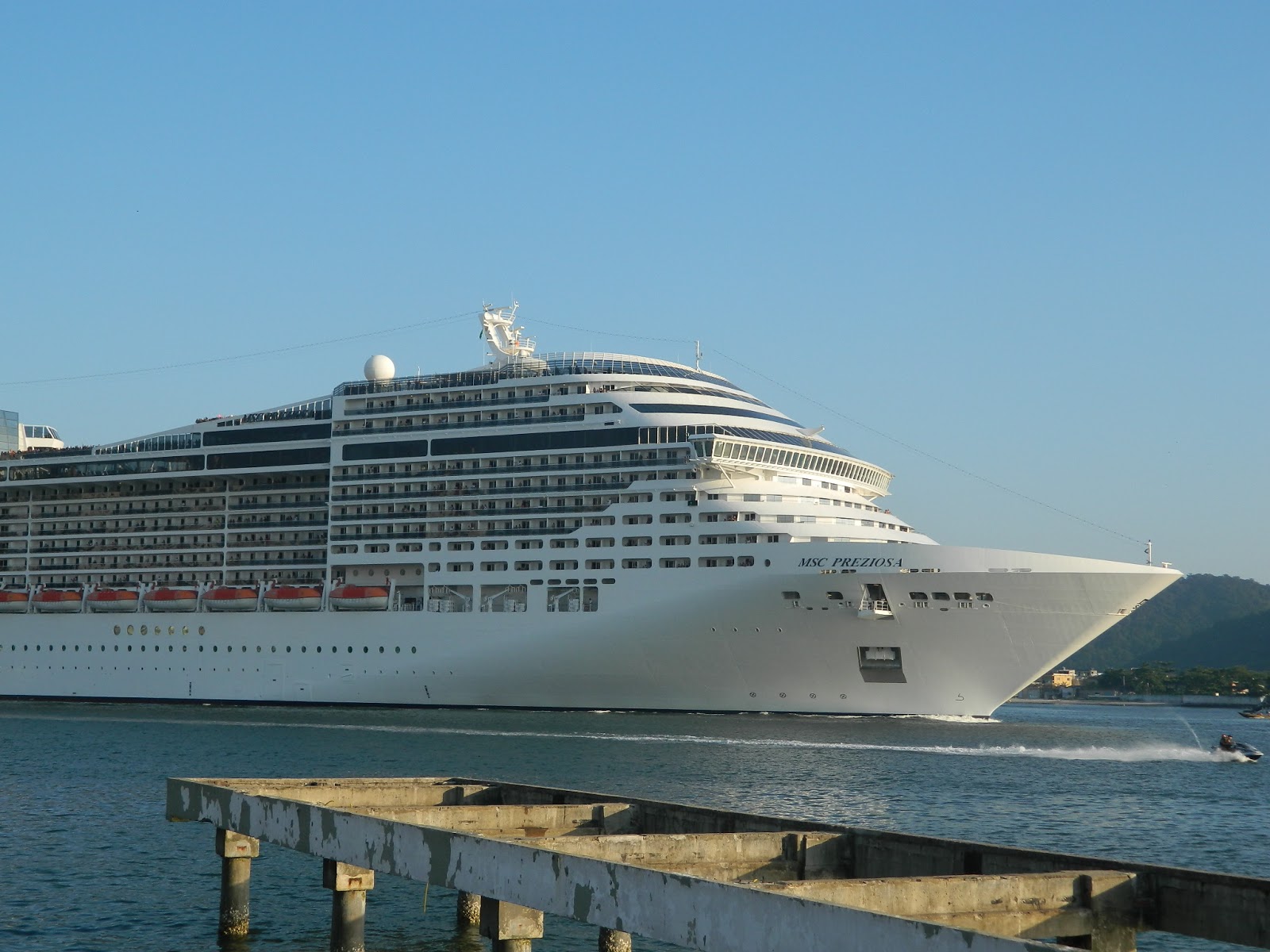 O MSC Preziosa partiu de Santos no último dia 18, em roteiro de sete noites rumo ao Nordeste. Após escalar o Rio de Janeiro, Salvador e Ilhéus, a embarcação ainda tinha prevista escala em Búzios antes de retornar a Santos no próximo sábado.