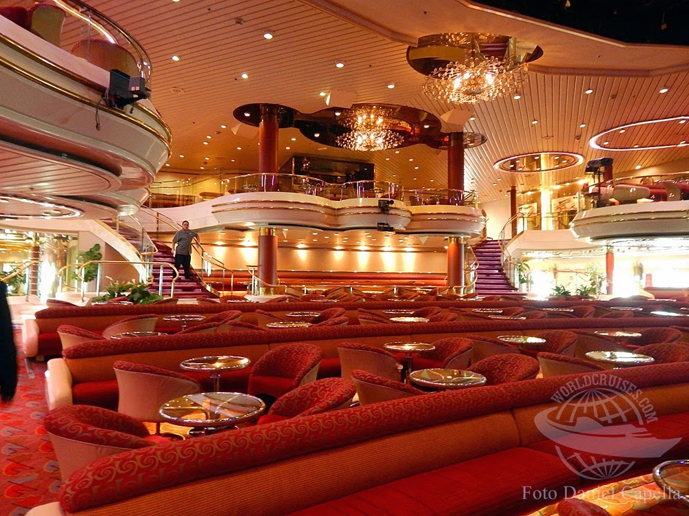 O salão Broadway é o teatro de bordo, e ocupa dois andares na área da proa. |