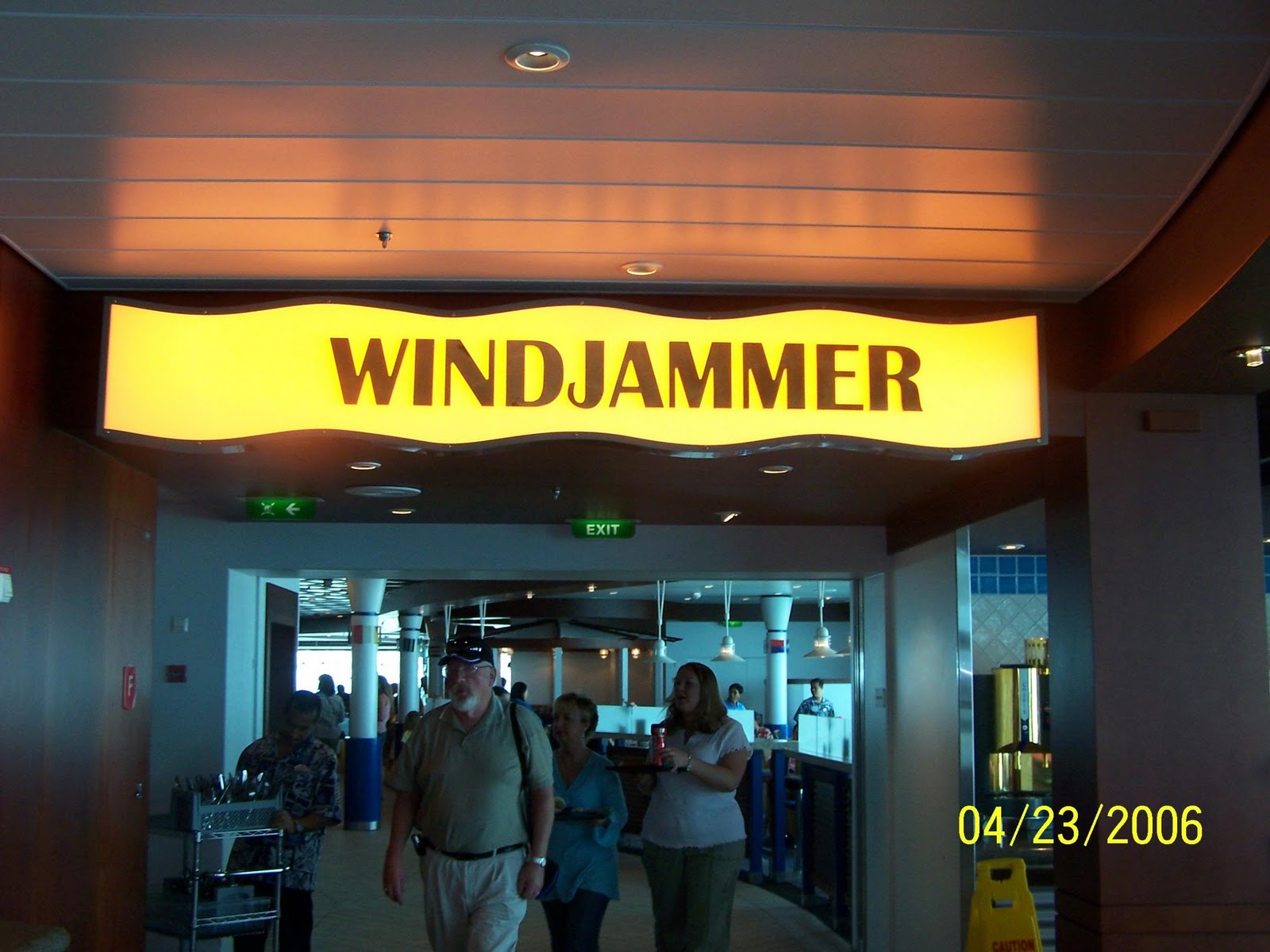 Já o Windjammer Café, tradicional restaurante Self-Service da Royal, fica, na frente do navio, em um dos decks superiores. Ao todo, ele tem 348 lugares, mas é interligado ao restaurante Oriental Jade, e ao Chops Grille e Portofino, uma churrascaria, e um restaurante italiano respectivamente. Ao que tudo indica, o Jade funciona no sistema de buffet, como o Windjammer, e parece estar incluído no preço da viagem. Já o Chops Grille e o Portofino funcionam no sistema a la carte, e são pagos à parte. O Jade é o terceiro maior restaurante do navio, com capacidade para pouco mais de 230 pessoas.