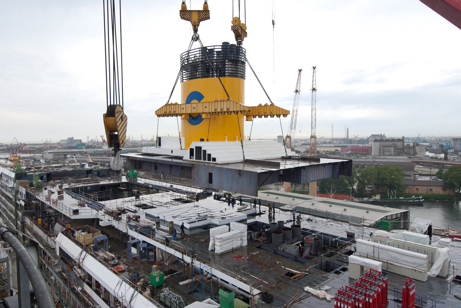 No último dia 26/06 o estaleiro italiano Fincantieri instalou a chaminé no novo Costa Favolosa. O navio é o 15º navio da frota da companhia, e ficará pronto em Junho de 2011. Ele foi encomendado em Outubro de 2007, junto a seu gêmeo, o Fascinosa que será entregue em 2012. Ambos são navios da Classe Concordia, e são praticamente iguais a seus gêmeos – Pacifica, Serena, Concordia e Splendour (Carnival) – com 114.500 toneladas e capacidade para 3.780. Haverão algumas diferenças, como a piscina de popa, que nos dois novos navios não será coberta como nos outros. O Costa Favolosa terá uma decoração temática, que será voltada ao tema “Conto de Fadas”, que é o significado do nome do navio, em italiano.