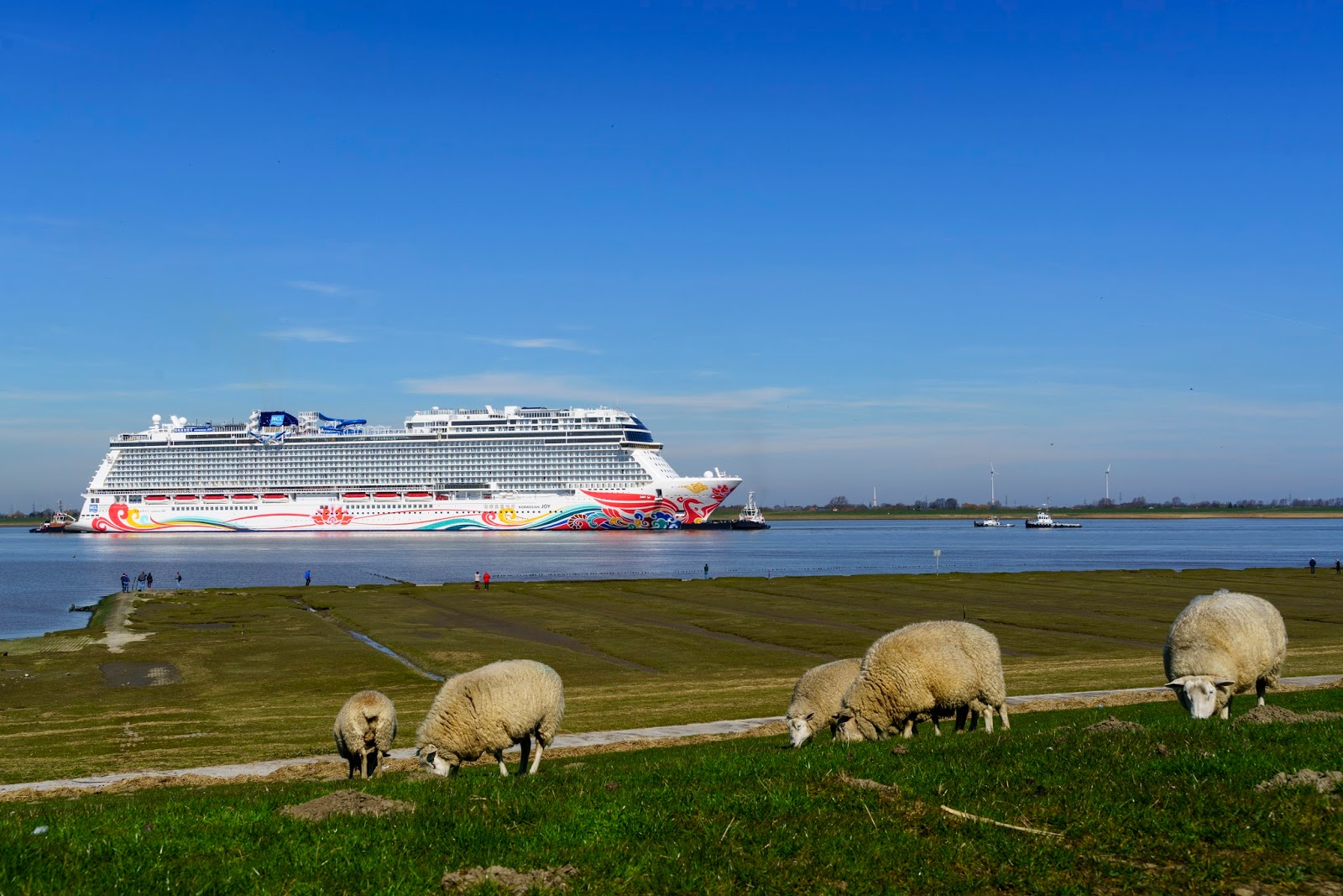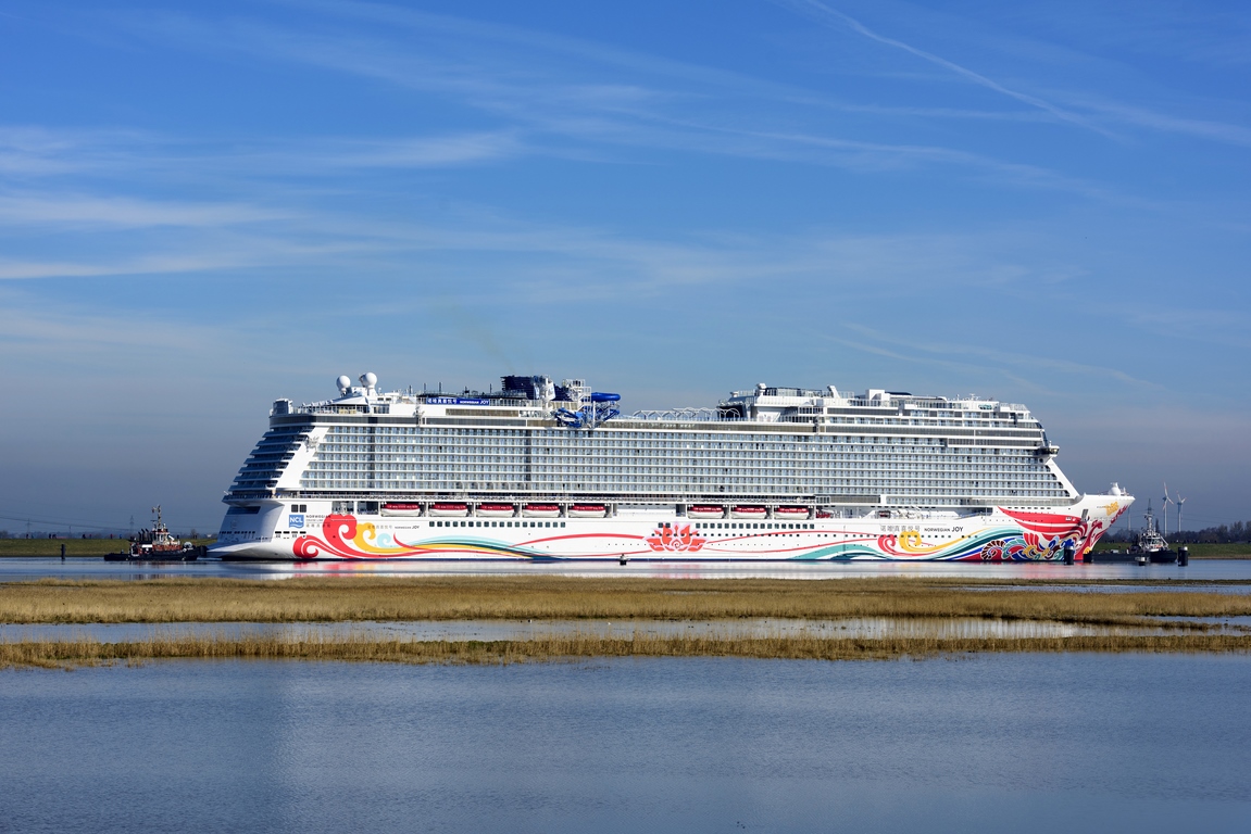 Construído no interior do continente europeu, o Norwegian Joy iniciou sua jornada rumo ao mar através do Rio Ems. Mais novo navio da Norwegian Cruise Line, a embarcação foi projetada para navegar na China, e é uma das maiores do mundo, com cerca de 170,000 toneladas brutas!