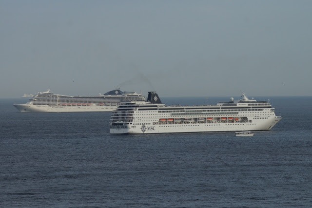 | MSC Splendida com o Empress, da Pullmantur, ao fundo. |