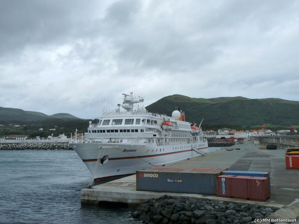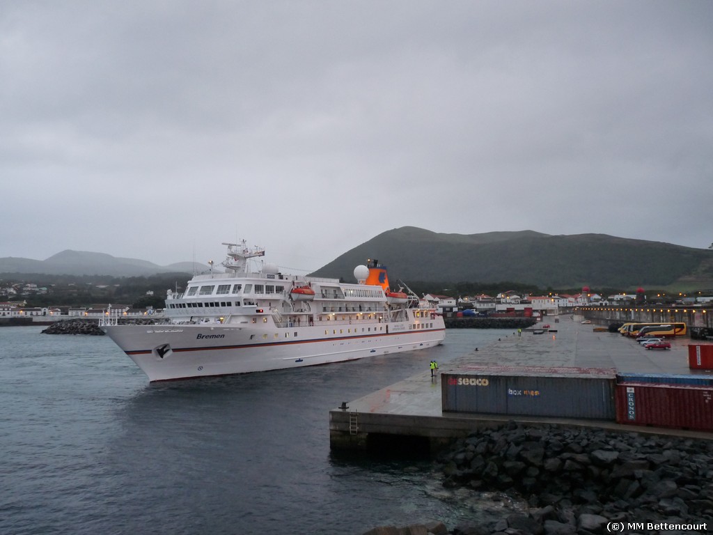 O porto da Graciosa, recebeu hoje, com a maior satisfação a escala do bonito e luxuoso, navio de cruzeiros “Bremen”, navio da companhia alemã Hapag Lloyd Cruises, que está a realizar um cruzeiro temático aos Açores, intitulado “Em cada Ilha um Paraíso”. O navio que efectua hoje a sua estreia na Graciosa, deu entrada pelas 8:10 horas e tem a saída prevista para as 17 horas, transportando 141 cruzeiristas e 104 tripulantes. A Todos,Votos de uma Agradável estadia!