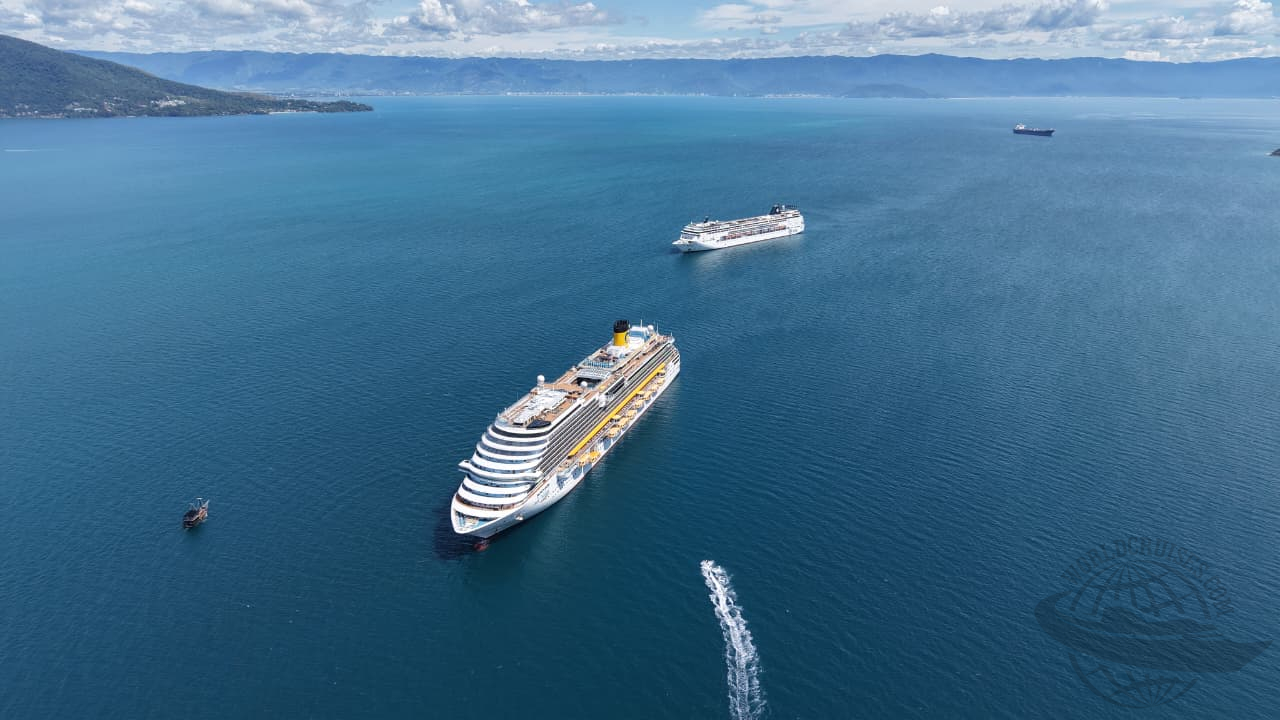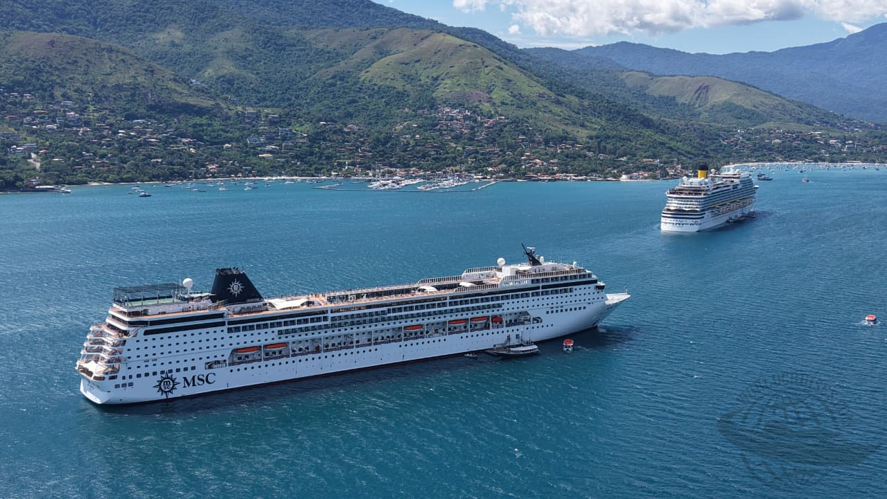 Nas imagens, registros de uma escala dupla anterior com visitas do Costa Diadema e do MSC Armonia em meados de dezembro de 2025.