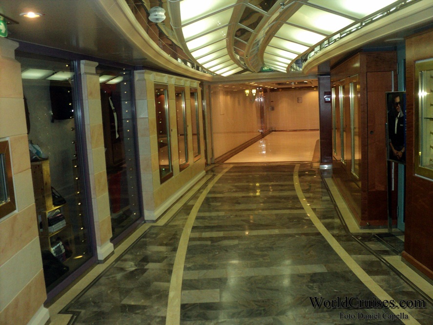 É algo que não existe nos navios modernos: um espaço amplo, para relaxamento, com paredes de vidro e vários estofados. Para ficar de acordo com o atual status da indústria de cruzeiros, a área vêm sendo substituída nos gêmeos do Vision por restaurantes temáticos pagos (algo que tem também todo um significado simbólico, a teoria greedy). Após os elevadores e o Centrum ficam o Photoshop, onde é possível comprar câmeras fotográficas, fotos do interior e exterior do navio, e as fotos tiradas pelos fotógrafos de bordo, e as Boutiques of the Centrum, que ocupam grande parte do navio. O local é dividido em quatro lojas: uma de roupas de marcas como Lacoste, e que também vende as famosas Bijoux Terner e produtos da Apple e Nintendo, uma de bebidas, chocolates e produtos de uso geral, como pastas de dente e adaptadores de tomada, outra com produtos com o logotipo da Royal, e souveniers do navio, e ainda uma de perfumes e jóias. As restantes áreas públicas ficam nos decks nove e dez: as piscinas, o Windjammer Cafe, o Shipshape Spa, a área de adolescentes e crianças, e a parede de escalada. Mais acima, no ponto mais alto do navio está o Viking Crown Lounge, que é a boate do navio durante a noite, e durante o dia funciona como local de observação.