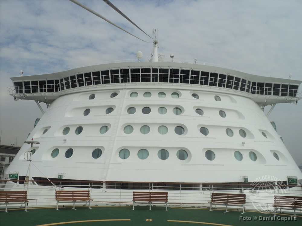 Como (quase) todo navio da Royal Caribbean, o Mariner conta com um grande “Viking Crown”, a área envidraçada e panorâmica próxima à chaminé. |