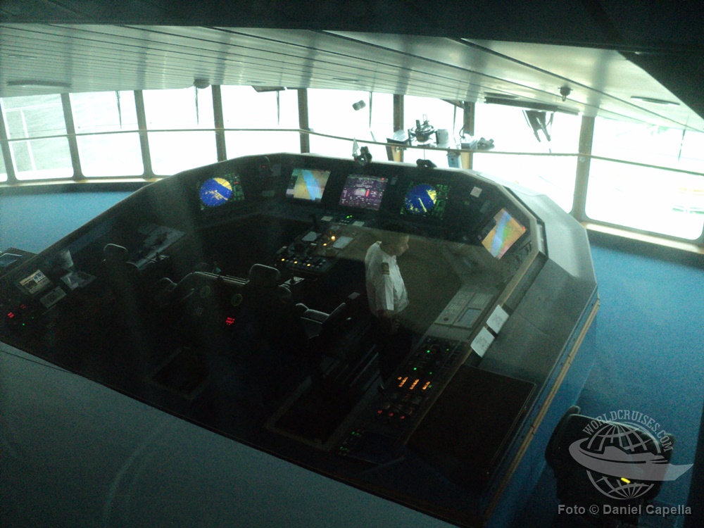 Um diferencial da classe Voyager é uma área chamada Peek-a-Boo, de onde é possível – durante certos horários – observar a movimentação na ponte de comando dos navios. |