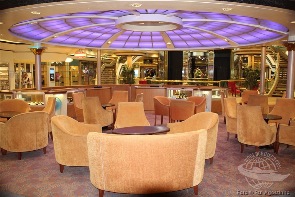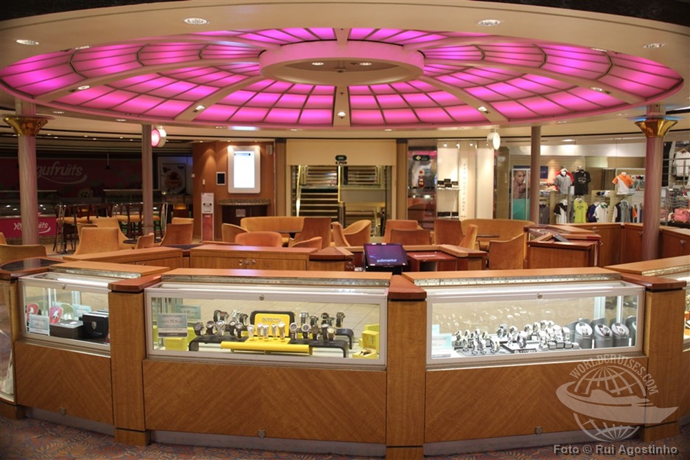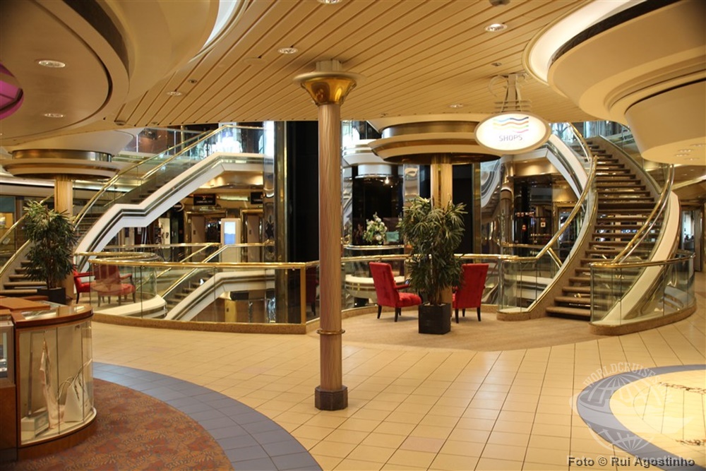 O navio ainda conta com uma área de lojas, próxima ao átrio. |