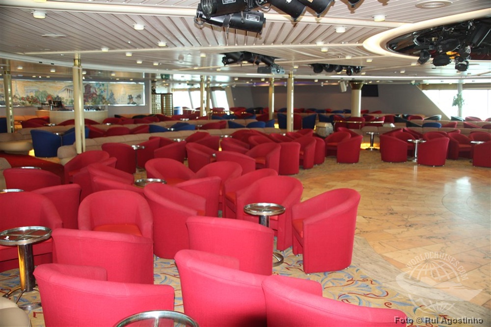 Localizada na popa, a disco é uma espécie de show-lounge com uma grande pista de dança central. |