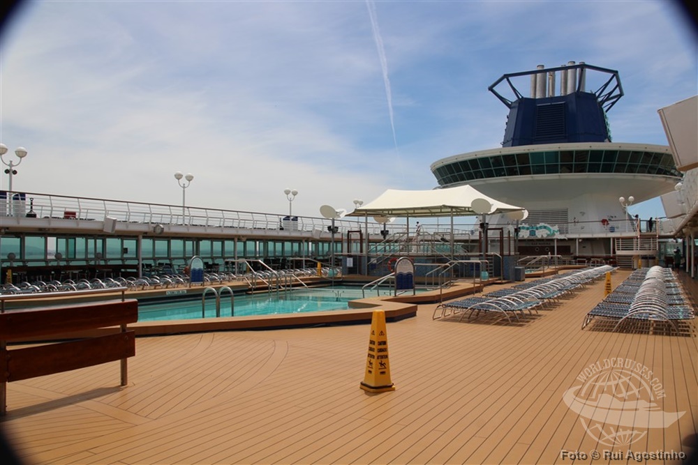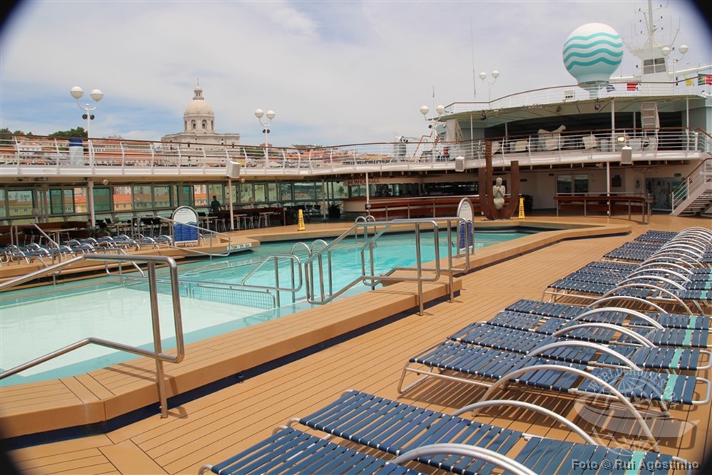 | No deck superior, estão disponíveis duas piscinas aos passageiros, na mesma área. |