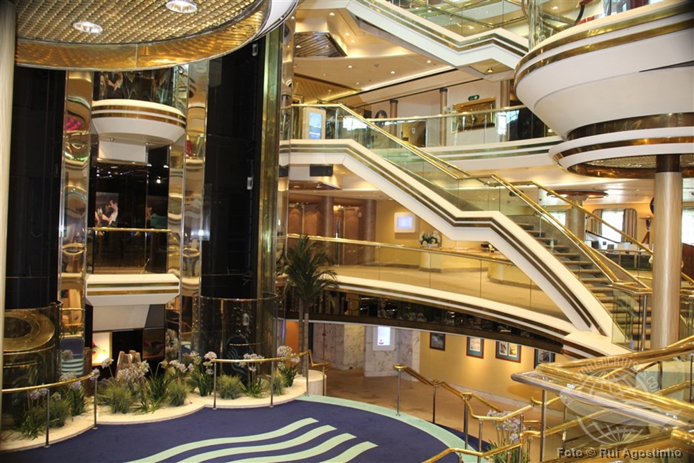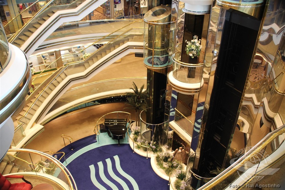 | Assim, o navio conta com um grande átrio chamado Centrum, com mais de 5 andares, e dois elevadores panorâmicos. |