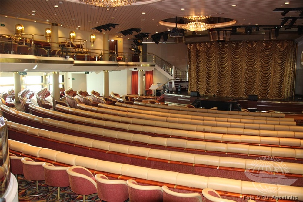 O teatro do navio tem dois andares, e é ligeiramente diferente daquele encontrado no Sovereign, seu gêmeo. |