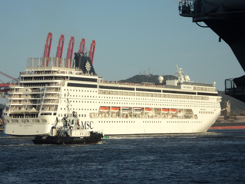 O segundo navio a chegar para a temporada brasileira, MSC Armonia, fez nova escala em Santos neste Domingo. Ele chegou a cidade na última Quarta-feira, e após um mini-cruzeiro com 1,700 passageiros retornou para embarcar novos 1,700 passageiros para um novo mini-cruzeiro, e seguiu para Búzios, no Rio. Essa é a segunda temporada seguida do Armonia baseado em Santos desde sua volta a cidade ano passado, quando realizou somente mini-cruzeiros durante toda a temporada. Desta vez, ele fará cruzeiros maiores, de nove noites para o Prata, com destaque para as escalas em Montevidéu e São Francisco do Sul.