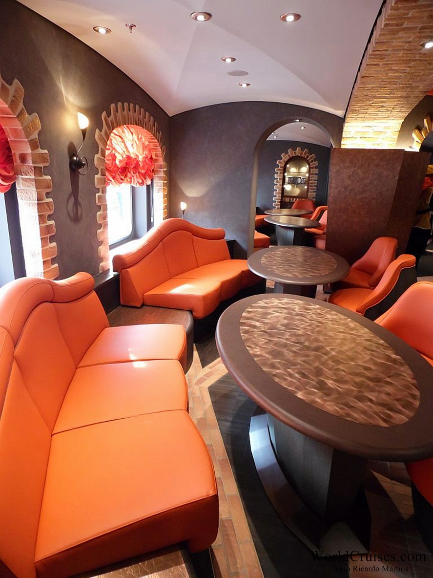 Ainda nos decks inferiores, o lounge de popa, no Preziosa chamado Safari, ganhou alguns metros quadrados com o remanejamento de áreas operacionais para outras áreas. O restaurante de dois andares, Golden Lobster no Preziosa, também ganhou mais espaço e várias novas mesas, expandindo-se para a área que antes era ocupada pela livraria e cyber café. Este último, foi colocado na área onde funcionava o centro de convenções do Fantasia, e este, por sua vez, foi transferido para a área da discoteca, nos decks mais altos do navio, em um local pouco utilizado nos primeiros navios da classe, que serviria como uma balada mais exclusiva, provavelmente para membros do Yatch Club; já a biblioteca, divide agora espaço com um dos vários bares do átrio principal.