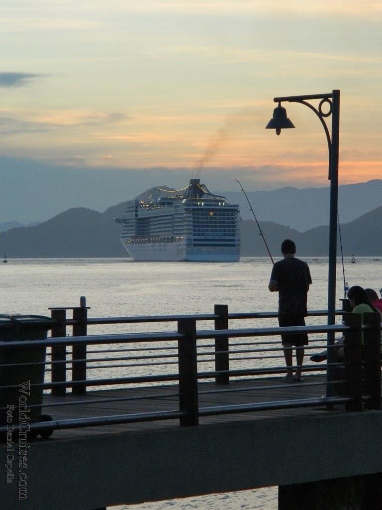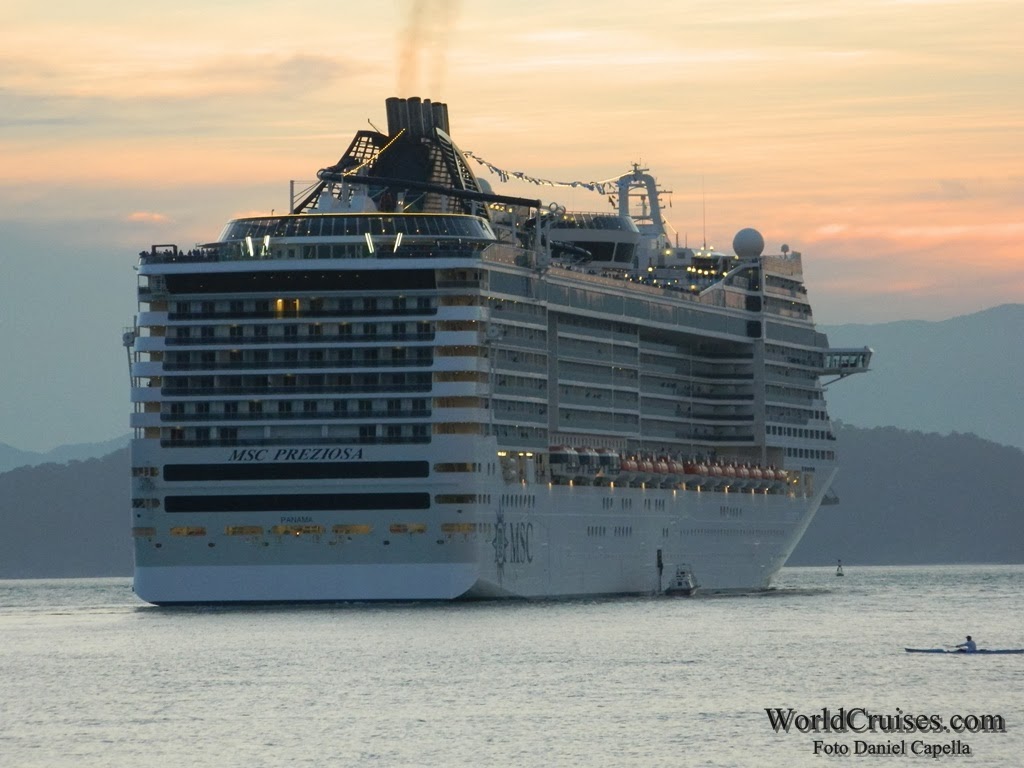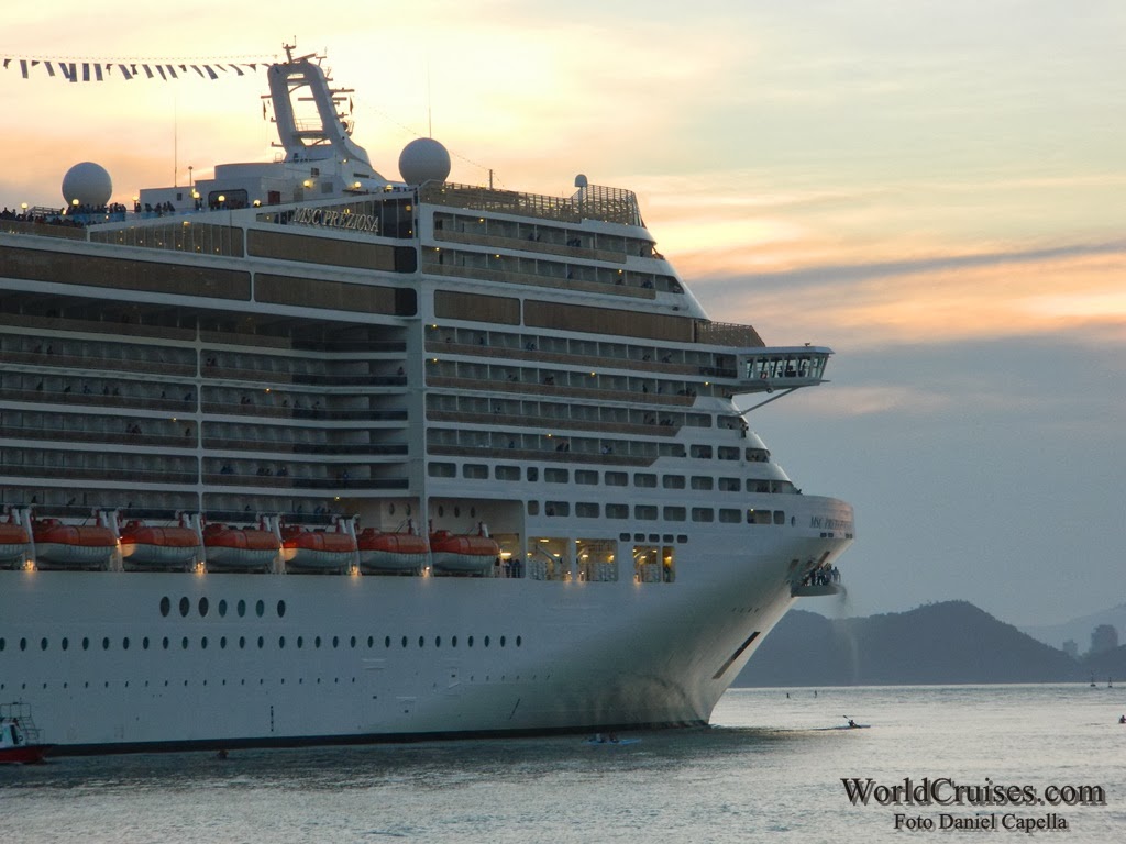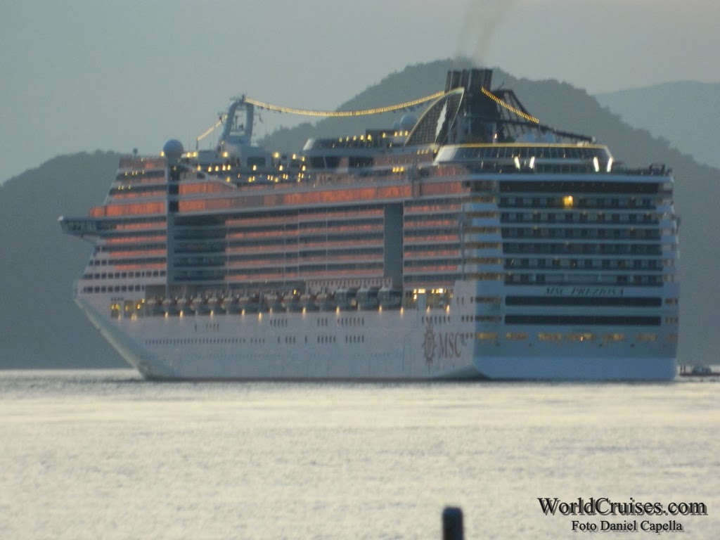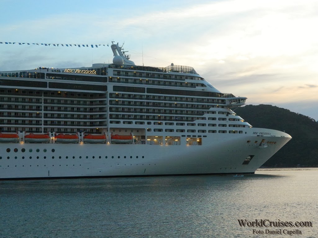 Após estrear no Brasil no último dia 26, o MSC Preziosa passou a realizar mini-cruzeiros de três e quatro noites com base em Santos. Apesar de a maioria de seus roteiros para a temporada possuírem uma semana, e terem destino a Salvador, o primeiro desse tipo só ocorrerá em 13 de dezembro.No último dia 3, o navio da classe Fantasia da MSC partiu em mais uma viagem de três noites, a terceira da temporada. O cruzeiro fez escalas em Búzios e Ilhabela antes de retornar a Santos o último dia 6. Em um dia ensolarado, partiu de Santos pouco depois das 19h30min, ainda com a companhia do sol.