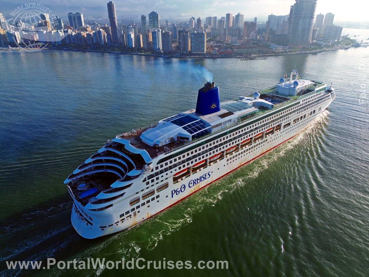 O Aurora, da armadora britânica P&O Cruises, realiza sua escala inaugural em Santos na manhã deste sábado (24/1).