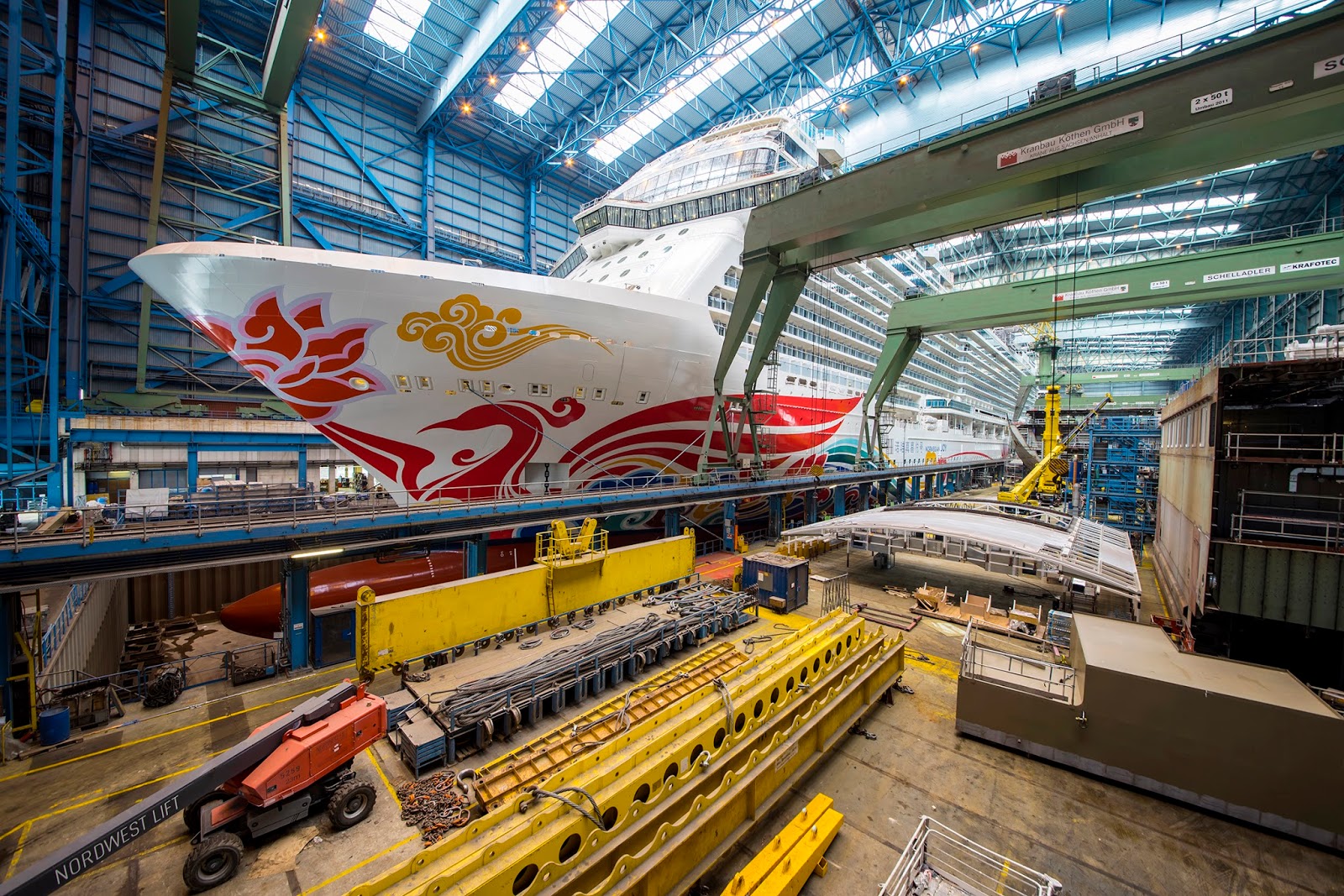Em 4 de março de 2017, o navio de cruzeiro Norwegian Joy, com 168.800 toneladas, flutuará pela primeira vez e deixará o cais coberto do estaleiro Meyer Werft.