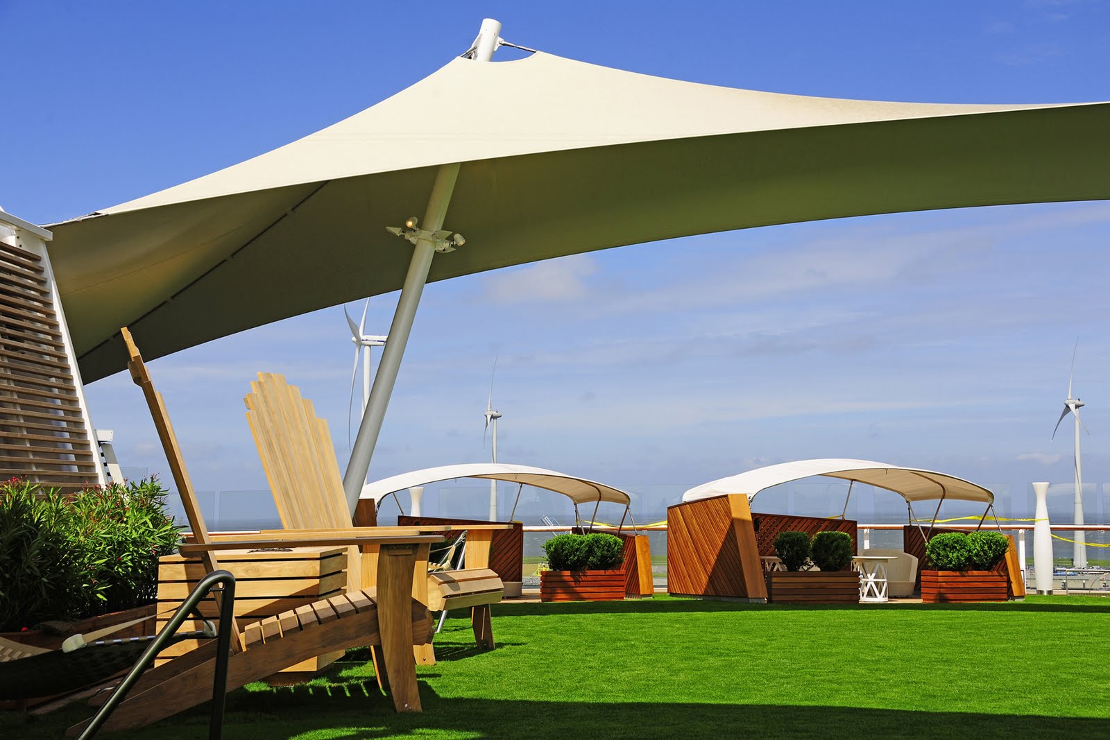 | O gramado natural do navio que foi batizado de The Lawn Club |