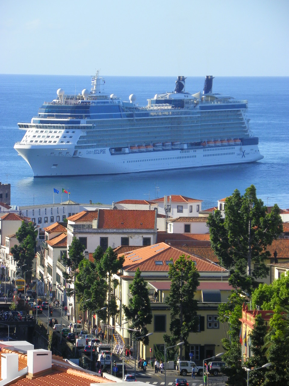 O terceiro elemento da classe Solstice, da Celebrity Cruises uma classe de paquetes ultra-modernos como manda a nova geração, faz a sua estreia hoje no porto do Funchal, nada mais nada menos que o Celebrity Eclipse que precisamente há um mês teve a sua cerimónia de inauguração em Southampton e cuja madrinha foi Emma Pontin. Isto com algum atraso, pois o Celebrity Eclipse partiu no dia 21 de Abril para Bilbao mesmo antes do dia de inauguração previsto, num acto de bondade, para embarcar 2000 turistas de nacionalidade britânica que ficaram “presos” na Espanha devido à nuvem de cinza emitida pelo vulcão islandês, no qual originou o encerramento do espaço aéreo inglês e vários aeroportos na área. Regressou a Southampton no dia 23.Após a inauguração, o navio partiu em viagem inaugural de Southampton para um mini-cruzeiro até Cork na Irlanda, e agora a Celebrity lisonjeia-nos com a sua escala no Funchal no decorrer de um cruzeiro de 11 noites também com base em Southampton e idêntico aos da Royal Caribbean. Trata-se do primeiro cruzeiro a esta região atlântica por parte da Celebrity e desta nova aposta a este destino que trará o seu novo paquete mais 2 vezes ao Funchal até o Outono.O Celebrity Eclipse arribou à baía perto das 09:00 oriundo de Southampton a após uma lenta manobra, posicionou-se a estibordo para assim aportar no terminal 3. Segundo a previsão zarpa pelas 18:00 rumo a Tenerife e ainda agendadas estão as escalas respectivas em Las Palmas, Arrecife, Lisboa e Vigo para sucessivamente terminar em Southampton. Está previsto o seu regresso à baía do Funchal no vindouro dia 4 de Junho.