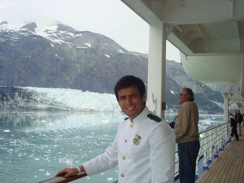 | Rafael Garcia curte paisagem do Alaska em uma pausa no seu trabalho a bordo do Dawn Princess |