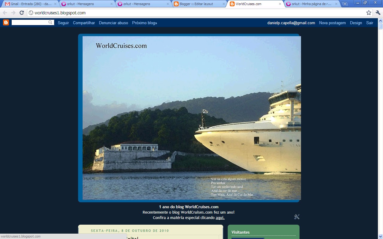 E assim seguimos, procurando, cada vez mais elevar a qualidade (mas não consequentemente a quantidade) e a profissionalidade de nossos serviços. E até agora, só temos a agradecer a nossos leitores, que continuam conosco, interessados na indústria de cruzeiros mesmo com a súbita queda da atividade no país.
